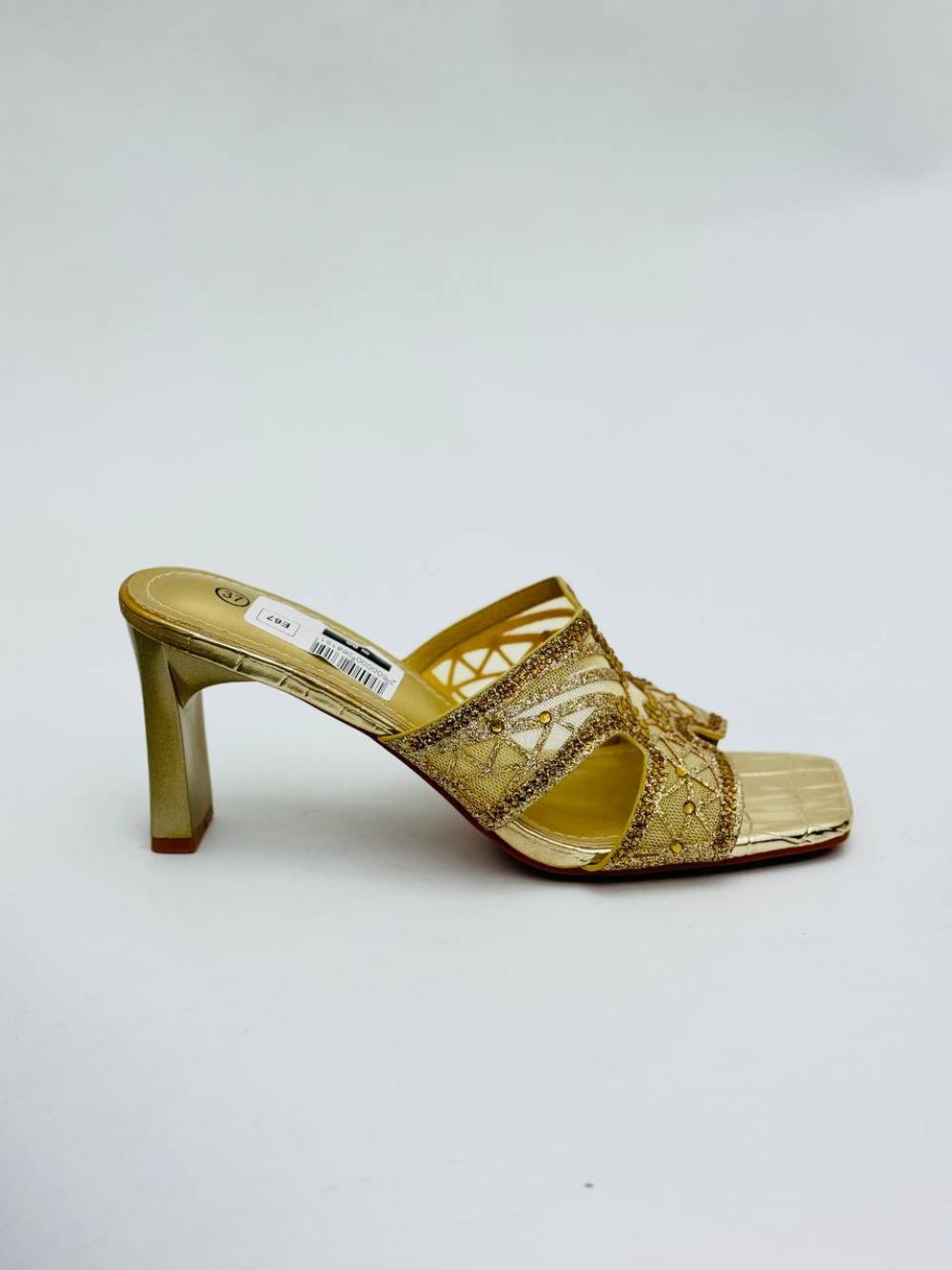 E67 ذهبي 38 بابوج ستاتي كعب عالي بوز مربع 25108