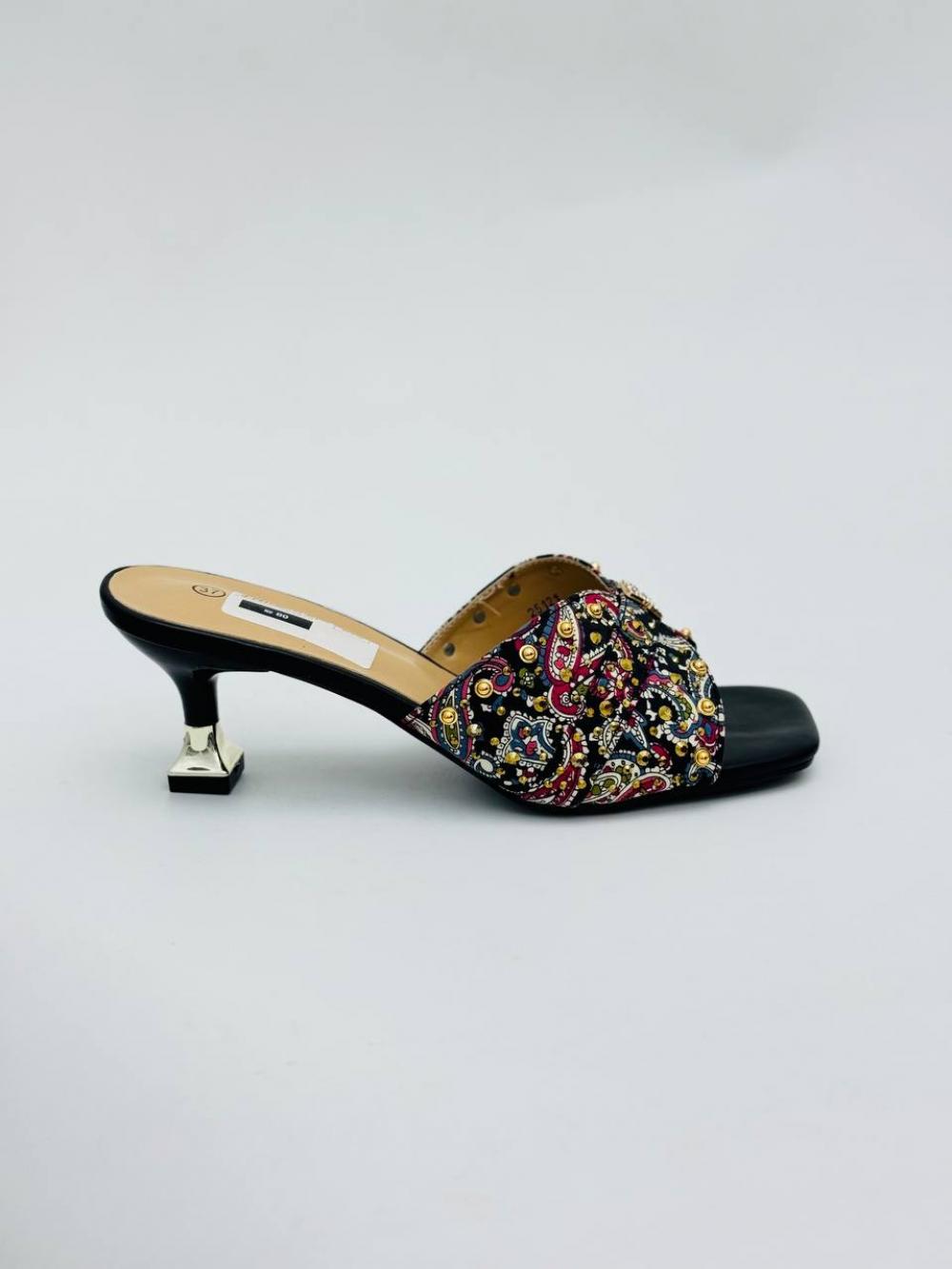 E70 اسود 36 بابوج ستاتي كعب عالي بوز مربع 25121