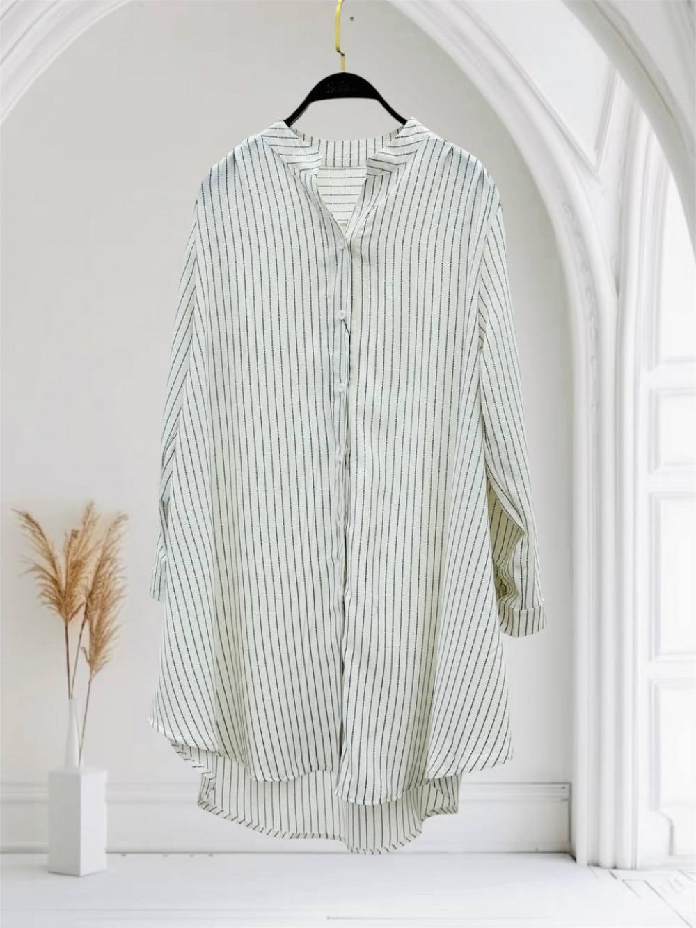 قميص مقلم CH ابيض 1 SIZE قميص طويل عملي مقلم
